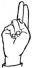 На ћирилици написано БОЈАН РИНЧИЋ састоји се из 11 слова [?]. Исписано ћириличном једноручном азбуком за глувонеме: